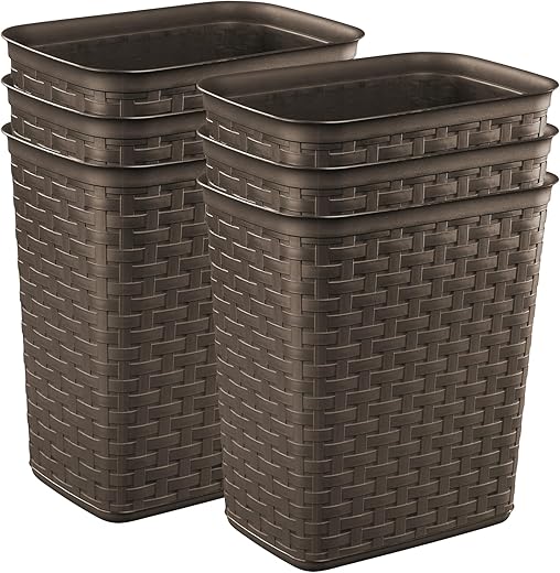 Sterilite 3.4 Gallon Weave Wastebasket, Small, Decorative Trash Can for the Bathroom, Bedroom, Dorm Room, or Office, Espresso Brown, 6-Pack3.4 Gallon Weave Wastebasket, Small, Decorative Trash Can for the Bathroom, Bedroom, Dorm Room, or Office, Espresso Brown, 6-Pack